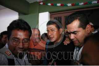 OAXACA, OAXACA, 25SEPTIEMBRE2008.- Delegado de la región de la Sierra Norte, Asael Santiago Chepi, se impuso con 563 votos sobre sus contendientes, Gabriel López Chiñas, del Valle Central y Héctor Pineda Santiago, del Istmo de Tehuantepec. Con 263 votos, López Chiñas quedó como secretario de organización, en tanto que Pineda Santiago, con 269 votos, como secretario de Finanzas. Los dos primeros cargos, los de mayor jerarquía en la estructura del Comité Ejecutivo Seccional (CES) de la Sección 22 del SNTE, fueron resueltos en una segunda vuelta al término del noveno precongreso del gremio celebrado en el Hotel del Magisterio de Esta Ciudad. FOTO: MAX NUÑEZ/CUARTOSCURO.COM