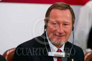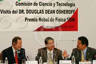 MÉXICO D.F., 25SEPTIEMBRE2008.- Douglas Dean Osheroff, premio nobel de fisica 1996, y los senadores Franciso Javier Castellón y Carlos Navarrete durante la reunión de la comisión de tecnología del Senado de la República. FOTO: RODOLFO ANGULO/CUARTOSCURO.COM