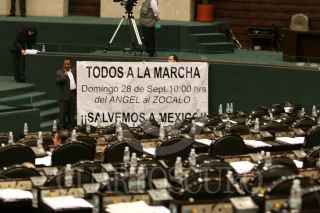 MÉXICO D.F., 25SEPTIEMBRE2008.-Se llevo acabo la sesión solemne en la Cámara de Diputados, donde se develaron con letras de oro en el muro de honor “A las Constituyentes de 1857” esto durante la sesión. En la imagen el diputado, Emilio Gamboa Patrón. FOTO: GUILLERMO PEREA/CUARTOSCURO.COM