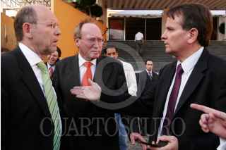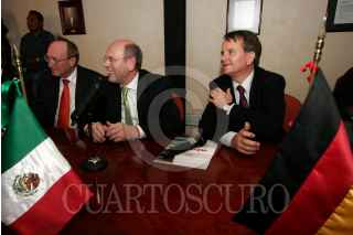 PUEBLA, PUEBLA, 29SEPTIEMBRE2008.- El embajador de Alemania en Puebla, Roland Wegener, junto a Walter Hirche, ministro de economÌa de Baja Sajonia, Alemania, sostuvieron una reunión con empresarios poblanos y con el secretario de desarrollo económico del estado, José Antonio López-Malo Capellini para planear proyectos de inversión en el aeropuerto internacional de Huejotzingo, con el fin de crear viajes directos entre el estado poblano y el país europeo. FOTO: JAVIER PALACIOS/CUARTOSCURO.COM
