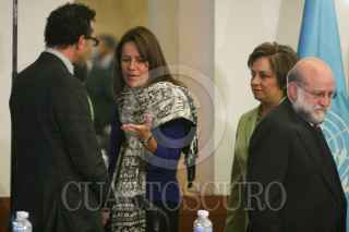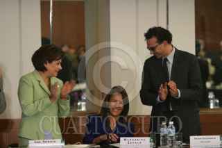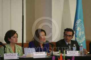 MÉXICO, D.F., 30SEPTIEMBRE2008.- Patricia Espinosa, Secretaría de Relaciones Exteriores, Margarita Zavala, Primera Dama y Karim Ghezraoui, representante del Alto Comisionado para los Derechos Humanos de la ONU, durante la reunión internacional sobre la protección de los derechos niños y las niñas en el contexto de la migación internacional "Migración y Derechos Humanos de los Niños y Niñas". FOTO: MOISÉS PABLO/CUARTOSCURO.COM