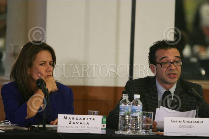 MÉXICO, D.F., 30SEPTIEMBRE2008.- Patricia Espinosa, Secretaría de Relaciones Exteriores, Margarita Zavala, Primera Dama y Karim Ghezraoui, representante del Alto Comisionado para los Derechos Humanos de la ONU, durante la reunión internacional sobre la protección de los derechos niños y las niñas en el contexto de la migación internacional "Migración y Derechos Humanos de los Niños y Niñas". FOTO: MOISÉS PABLO/CUARTOSCURO.COM