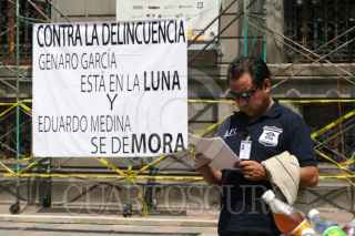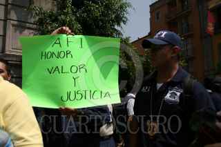 MÉXICO D.F., 30SEPTIEMBRE2008.- Elementos del Agencia Federal de Investigación (AFI) se manifestaron en contra de ser omologados con la secretaria de seguridad federal, esto a las afueras de las instalaciones del Senado de la República. FOTO: GUILLERMO PEREA/CUARTOSCURO.COM