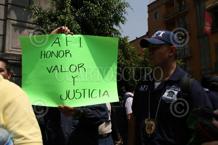 MÉXICO D.F., 30SEPTIEMBRE2008.- Elementos del Agencia Federal de Investigación (AFI) se manifestaron en contra de ser omologados con la secretaria de seguridad federal, esto a las afueras de las instalaciones del Senado de la República. FOTO: GUILLERMO PEREA/CUARTOSCURO.COM