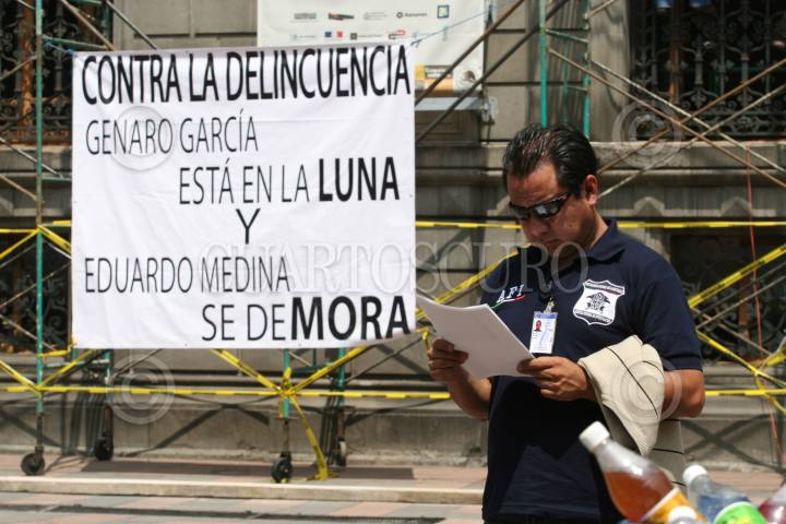 MÉXICO D.F., 30SEPTIEMBRE2008.- Elementos del Agencia Federal de Investigación (AFI) se manifestaron en contra de ser omologados con la secretaria de seguridad federal, esto a las afueras de las instalaciones del Senado de la República. FOTO: GUILLERMO PEREA/CUARTOSCURO.COM