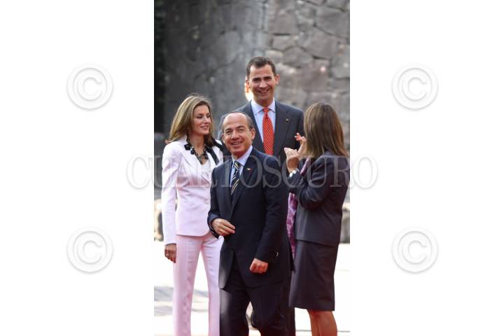 MÉXICO D.F., 01OCTUBRE2008.- Los Príncipes de Asturias, Felipe de Borbón y Grecia Letizia Ortiz al lado del presidente Felipe Calderón quien es acompañado de su esposa Margarita Zavala al termino de la inauguración del Primer Congreso de la Cultura Iberoamericana que se realiza en el Centro Nacional de las Artes. FOTO: RODOLFO ANGULO/CUARTOSCURO.COM