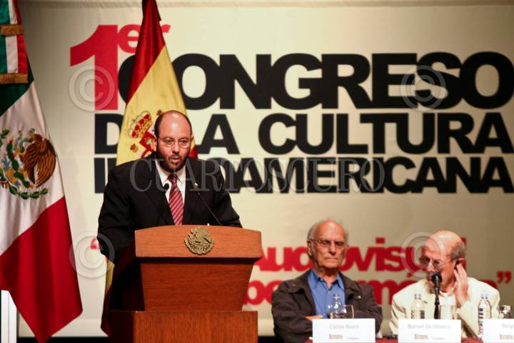 MÉXICO D.F., 01OCTUBRE2008.- Los Príncipes de Asturias, Felipe de Borbón y Grecia Letizia Ortiz al lado del presidente Felipe Calderón quien es acompañado de su esposa Margarita Zavala al termino de la inauguración del Primer Congreso de la Cultura Iberoamericana que se realiza en el Centro Nacional de las Artes. FOTO: RODOLFO ANGULO/CUARTOSCURO.COM