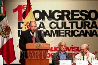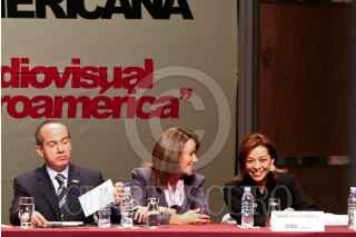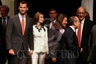 MÉXICO D.F., 01OCTUBRE2008.- Los Príncipes de Asturias, Felipe de Borbón y Grecia Letizia Ortiz al lado del presidente Felipe Calderón quien es acompañado de su esposa Margarita Zavala al termino de la inauguración del Primer Congreso de la Cultura Iberoamericana que se realiza en el Centro Nacional de las Artes. FOTO: RODOLFO ANGULO/CUARTOSCURO.COM