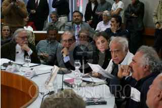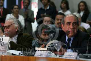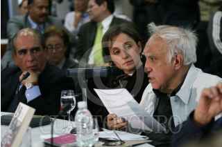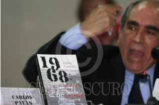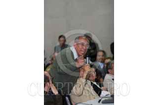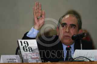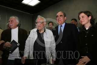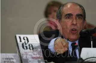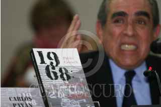 MÉXICO D.F., 01OCTUBRE2008.- Al cumplirse 40 años de la matanza en la Plaza de las Tres Culturas de Tlatelolco, el senador del PRD, Pablo Gómez, acompañado de Carlos Payan, Carmen Aristegui, Carlos Mosivais y Raúl Álvarez Garin, del Comité del 68, realizó la presentación de su libro que tiene como titulo “1968 la Historia También esta Hecha de Derrotas“ esto en el Centro Cultural Tlatelolco. FOTO: GUILLERMO PEREA/CUARTOSCURO.COM