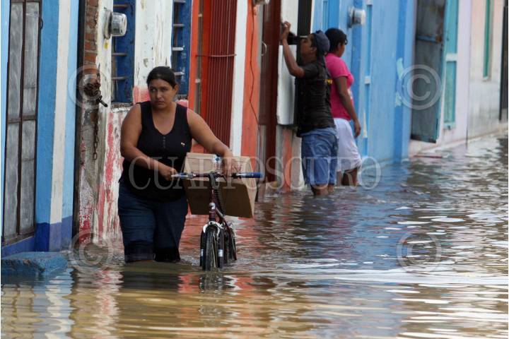 TLACOTALPAN, VERACRUZ, 01OCTUBRE2008.- A raíz del desfogue que se dio en la presa Miguel Alemán ubicada en el estado de Oaxaca, el afluente del río Papaloapan creció provocando que este se desbordara en la ciudad de Tlacotalpan, declarado por la UNESCO patrimonio cultural de la humanidad en 1998; a pesar de la afectación, los habitantes de este municipio caminan entre el agua realizando sus labores diarias. FOTO: JOSÉ CANDELARIO/CUARTOSCURO.COM