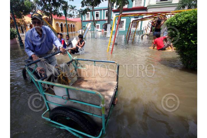 TLACOTALPAN, VERACRUZ, 01OCTUBRE2008.- A raíz del desfogue que se dio en la presa Miguel Alemán ubicada en el estado de Oaxaca, el afluente del río Papaloapan creció provocando que este se desbordara en la ciudad de Tlacotalpan, declarado por la UNESCO patrimonio cultural de la humanidad en 1998; a pesar de la afectación, los habitantes de este municipio caminan entre el agua realizando sus labores diarias. FOTO: JOSÉ CANDELARIO/CUARTOSCURO.COM