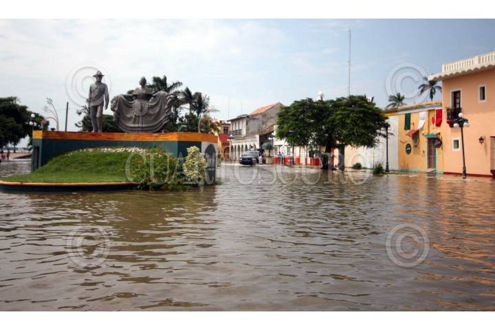 TLACOTALPAN, VERACRUZ, 01OCTUBRE2008.- A raíz del desfogue que se dio en la presa Miguel Alemán ubicada en el estado de Oaxaca, el afluente del río Papaloapan creció provocando que este se desbordara en la ciudad de Tlacotalpan, declarado por la UNESCO patrimonio cultural de la humanidad en 1998; a pesar de la afectación, los habitantes de este municipio caminan entre el agua realizando sus labores diarias. FOTO: JOSÉ CANDELARIO/CUARTOSCURO.COM