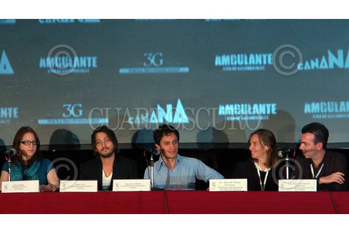 MORELIA, MICHOACÁN, 06OCTUBRE2008.- Los actores, Gael García Bernal y Diego Luna, durante la conferencia que se realizó en torno al Festival Internacional de Cine de Morelia en la que ofrecieron el programa de la gira ambulante. FOTO: FEDERICO ALTAMIRANO/CUARTOSCURO.COM