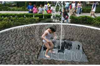 MÉXICO, D.F., 11OCTUBRE2008.- Un niño se refresca y juega con el agua de una fuente de un parque en la ciudad, hasta quedar en ropa interior. FOTO: SÁSHENKA GUTIÉRREZ/CUARTOSCURO.COM