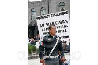 MÉXICO, D.F., 13OCTUBRE2008.- Este medio día un grupo de sindicalizados pertenecientes a la Secretaría de Salud, se manifiestan a las afueras de este recinto, ante el rechazo de las autoridades de esta secretaría, a la petición del retiro de los manifestantes. FOTO: MISAEL VALTIERRA/CUARTOSCURO.COM