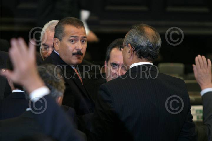 MÉXICO D.F., 16OCTUBRE2008.- Los senadores del PRD Pablo Gómez y Carlos Navarrerte conversan con el senador del PRI Manlio Flavio Beltrones durante la sesión ordinaria del Senado de la República. FOTO: RODOLFO ANGULO/CUARTOSCURO.COM