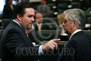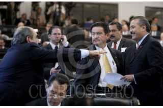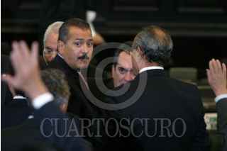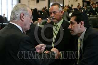 MÉXICO D.F., 16OCTUBRE2008.- Los senadores del PRD Pablo Gómez y Carlos Navarrerte conversan con el senador del PRI Manlio Flavio Beltrones durante la sesión ordinaria del Senado de la República. FOTO: RODOLFO ANGULO/CUARTOSCURO.COM