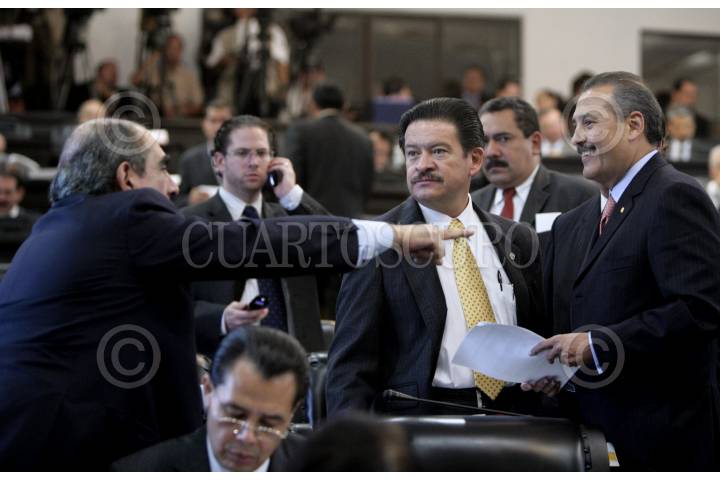 MÉXICO D.F., 16OCTUBRE2008.- Los senadores del PRD Pablo Gómez y Carlos Navarrerte conversan con el senador del PRI Manlio Flavio Beltrones durante la sesión ordinaria del Senado de la República. FOTO: RODOLFO ANGULO/CUARTOSCURO.COM
