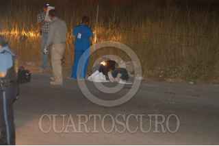CIUDAD JUÁREZ, CHIHUAHUA, 16OCTUBRE DEL 2008.- La madrugada de ayer autoridades ministeriales luego de una llamada encontraros los cuerpos sin vida de tres hombres que fueron ejecutados sobre el pavimento y frente a un lote baldío en las calles Zacatecas y Miguel Hidalgo de la Colonia Salvarcar, los cadáveres estaban esposados y presentaban múltiples orificios de bala en la cabeza. FOTO: BIENINFORMADO.COM/CUARTOSCURO.COM