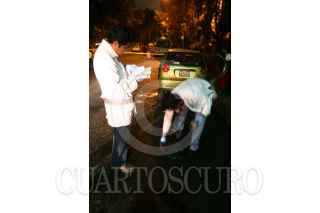 MÉXICO D.F., 16OCTUBRE2008.- Una persona perdió la vida despues de que un sujeto le disparo por varias ocaciones sobre la calle Cefiro y Av. Panamericana en la colonia Insurgentes Cuicuilco. En la imagen peritos de la procuraduria capitalina trabajan en el lugar de los hechos. FOTO: SAUL LOPEZ/CUARTOSCURO.COM