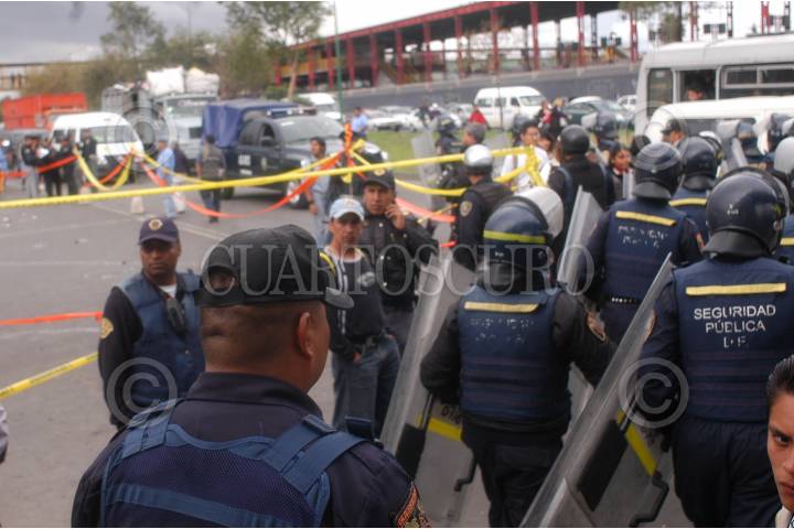 MÉXICO, D.F., 17OCTUBRE2008.- Se suscitó un enfrentamiento entre comerciantes semifijos ubicados en la calzada de Zaragoza a la altura del metro Tepalcates, el pleitó se dió entre dos bandos que se quieren apropiar del lugar dejando como resultado un mujer herida y un hombre lesionado que murió durante el traslado hacia el hospital y una camioneta destrozada y un Tsuru hacia como varios locales. FOTO: JULIETA MORACUARTOSCURO.COM