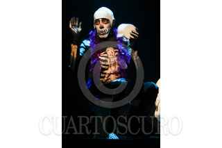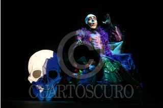MÉXICO, D.F., 16OCTUBRE2008.- Carmen Salinas apadrino a Alberto "El Caballo" Rojas, durante el estreno de la obra "Los monólogos de la Catrina". FOTO: RICARDO CASTELAN/CUARTOSCURO.COM