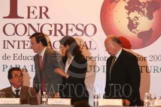 MÉXICO, D.F., 21OCTUBRE2008.- Marcelo Ebrard Jefe de Gobiernoacompañado por José Narro Rector de la UNAM y El Secretario de Educación Axel Didriksson Inauguro esta mañana el Primer Foro Internacional de Educación Media Superior y Superior. FOTO: SÁSHENKA GUTIÉRREZ/CUARTOSCURO.COM