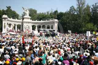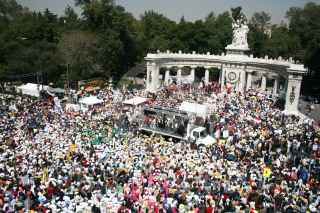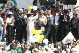 MÉXICO, D.F., 21OCTUBRE2008.- Andrés Manuel López Obrador se dio cita el Hemiciclo a Juárez, en donde en una asamblea habló sobre los dictámenes de la reforma energética, que se analizan en el Senado ademas de llamar para una posible movilización. FOTO: SÁSHENKA GUTIÉRREZ/CUARTOSCURO.COM