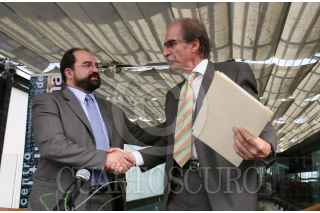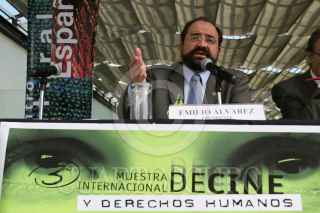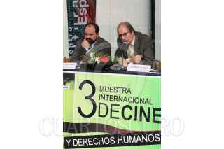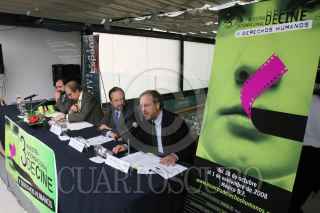 MÉXICO, D.F., 21OCTUBRE2008.- Emilio Alvárez Icaza, Presidente de la Comisión de Derechos Humanos del DF, Carmelo Angulo, Embajador de España en nuestro país, Germán de la Garza, delegado en Bénito Juárez y José Luis Navarro, director de la Muestra Internacional de Cine y Derechos Humanos, durante la conferencia de prensa para dar a conocer detalles de la muestra que se realizará en 11 ciudades de España y Latinoamérica, los temas que se tocarán en nuestra capital son la libertad sexual y de expresión, los conflictos armados y se realizará del 26 de octubre al 1 de noviembre en el Polyforum Siqueiros. FOTO: MOISÉS PABLO/CUARTOSCURO.COM