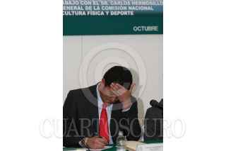 MÉXICO D.F., 21OCTUBRE2008.- Carlos Manuel Hermosillo Goytortua, Director General de la CONADE, acudió esta tarde a la Cámara de Diputados donde compareció ante la Comisión del Nacional de Cultura Física y Deporte de esta cámara. FOTO: GUILLERMO PEREA/CUARTOSCURO.COM