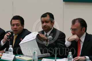 MÉXICO D.F., 27OCTUBRE2008.- Mario Delgado Carrillo, Secretario de Finanzas del D.F. así como Luis Videgaray Caso, Secretario de Finanzas del Estado de México y Nuvia Mayorga Delgado, Secretaria de Finanzas del Estado de Hidalgo, acudieron esta mañana a la Cámara de Diputados donde se reunieron con los diputados integrantes de la Comisión de Desarrollo Metropolitano, de esta cámara. FOTO: GUILLERMO PEREA/CUARTOSCURO.COM