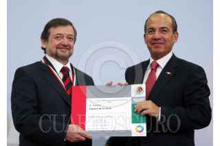 MEXICO D.F. 27 DE OCTUBRE DEL 2008. El Presidente de la republica Felipe Calderón Hinojosa durante la II Reunión de ministros y altas autoridades de ciencias y tecnologias en ambito de la organizacion de estados americanos. La ceremonia de entrega del premio México de Ciencia y Tecnologia 2007 tuvo lugar en el Salon Adolfo Lopez Mateos de la Residencia de los Pinos. FOTO ALFREDO GUERRERO/CUARTOSCURO.COM