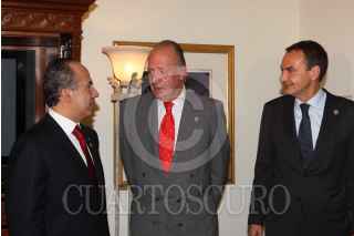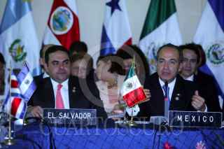 SAN SALVADOR, EL SALVADOR, 30OCTUBRE2008.- El presidente de México, Felipe Calderón Hinojosa, durante la reunión con el Rey de España, Juan Carlos y con el presidente del Gobierno Español, José Luis Rodriguez Zapatero; en el marco de la "XVIII Cumbre Iberoamericana. FOTO: ARIEL GUTIERREZ/CUARTOSCURO.COM
