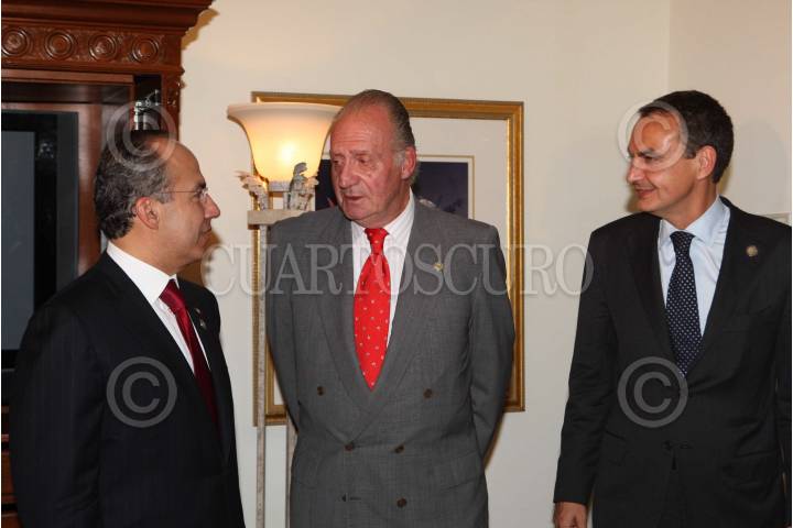 SAN SALVADOR, EL SALVADOR, 30OCTUBRE2008.- El presidente de México, Felipe Calderón Hinojosa, durante la reunión con el Rey de España, Juan Carlos y con el presidente del Gobierno Español, José Luis Rodriguez Zapatero; en el marco de la "XVIII Cumbre Iberoamericana. FOTO: ARIEL GUTIERREZ/CUARTOSCURO.COM