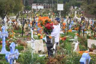 MÉXICO, D.F., 01NOVIEMBRE2008.- Hoy primero de Noviembre se realiza como es tradición la visita a los niños muertos: para lavar sus tumbas y llevarles juguetes y regalos que gustaban recibir en vida . la tradición de Días de Muertos se extiende del primero al dos de noviembre, siendo este ultimo y principal día , el venerado para los adultos o muertos mayores, a los cuales se les hace todo tipo de ofrendas y festejos mortuorios. FOTO: COSME RADA/CUARTOSCURO.COM