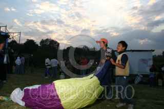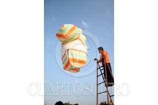 SAN AGUSTÍN OHTENCO, MILPA ALTA 02NOVIEMBRE2008.- Los pobladores de San Agustín celebran el 1, 2 de Noviembre dia de todos los santos con el concurso de globos hechos de papel china o tambien conocidos como globos de cantolla esto tiene como significado guiar a los muertos en su camino hacia el mundo de los vivos que todos los años en esta fechas retornará, ya que se dice que las almas se guían con los globos y arriban directo al altar, a la casa que alguna vez fue su morada. Los globos se realizan con papel de china, engrudo, y alambre, además de una esponja de algodón humedecida con petróleo o gasolina que al quemarse genera aire caliente, el cual hace que los globos se eleven. FOTO: SÁSHENKA GUTIERREZ/CUARTOSCURO.COM