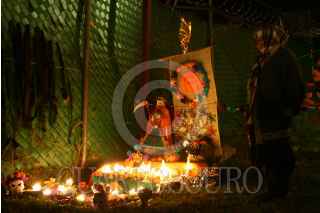 TULTITLAN, ESTADO DE MÉXICO, 02NOVIEMBRE2008.- Esta madrugada se realizo en el Santuario de la Santa Muerte una oración a todos lo muertos y al comandante Endoque Pantera ex líder religioso de este santuario quién fué encontrado muerto el pasado 31 de Julio, en el santuario se realizo una oración invocando a todos los muertos, además de un concurso de ofrendas. FOTO: SÁSHENKA GUTIÉRREZ/CUARTOSCURO.COM