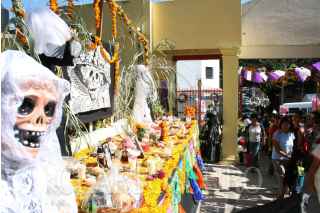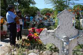CHILPANCINGO,GUERRERO 02 NOVIEMBRE2008.- Cientos de personas se dieron cita en el pateon central municipal de la capital del estado, para visitar las tumbas de sus familiares donde depositaron flores, cadenas de cempazuchitl asi como para arreglarlas, lavarlas y limpiarlas para posteriormente contrata grupos de musica norteña o mariachi quienes interpretaron melodias que en vida les gustabas a los difuntos, celebrando asi como cada año el Dia de Muertos o Fieles Difuntos. FOTO: OSCAR ALVARADO/CUARTOSCURO.COM