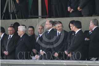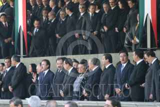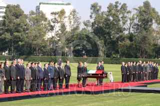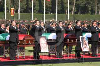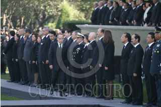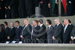 MÉXICO, D.F., 06NOVIEMBRE2008.- El ministro presidente de la SCJN, Guillermo Ortiz Mayagoitia, y Gustavo Madero, presidente de la Mesa Directiva del Senado, asistieron al homenaje que se rindió en Campo Marte a los funcionarios fallecidos tras el accidente aéreo del pasado martes. FOTO: RODOLFO ANGULO/CUARTOSCURO.COM
