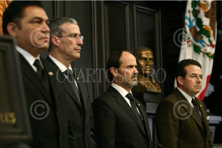 MÉXICO, D.F., 06NOVIEMBRE2008.- Los senadores del PAN Santiago Creel y Gustavo Madero durante la sesión ordinaria del Senado de la República. FOTO: RODOLFO ANGULO/CUARTOSCURO.COM