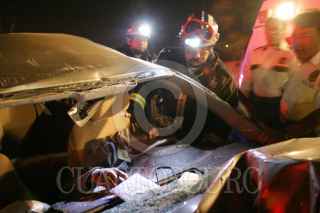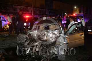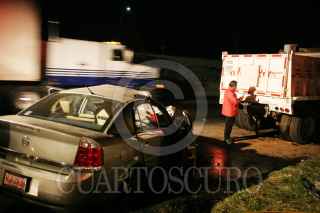 MÉXICO, D.F., 07NOVIEMBRE2008.- En carriles centrales de la calzada Ignacio Zaragoza, se registró un accidente de un vehículo Vectra chevrolet, que se estrello en la parte trasera de un camión de volteo que abanderaba los trabajos de limpia, pero que no tenía señalización. En el lugar murio el conductor de nombre, Erick Daniel Hernández Ríos de 21 años de edad. FOTO: LUZ ACEVEDO/CUARTOSCURO.COM