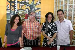 MÉXICO, D.F., 07NOVIEMBRE2008.- Los actores Sharon Speckman, Jaime Levy, la directora Iona Weisberg y el actor Abraham Stern durante la presentación de la obra de teatro Broocklyn Boy. FOTO: RODOLFO ANGULO/CUARTOSCURO.COM