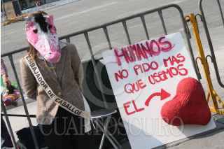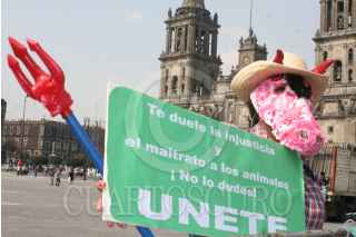 MÉXICO, D.F., 07NOVIEMBRE2008.-La Asociación Protectora de Animales de México se manifestó enfrente del Palacio Nacional para pedir la clausura definitiva del área de venta de animales en el mercado de San Bernabé en Almoloya de Juarez en el Estado de México FOTO: RICARDO CASTELAN/CUARTOSCURO.COM