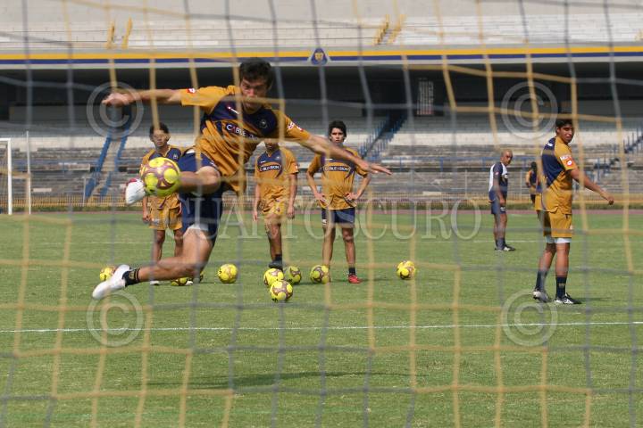 MÉXICO, D.F., 07NOVIEMBRE2008.- Los jugadores del Pumas de la UNAM, se dieron cita en la cancha del Estadio de C.U. para sus entrenamientos, esto previo a su próximo encuentro contra los Tecos de la UDG, en este mismo estadio. En la imagen el jugador, Efraín Velarde. FOTO: GUILLERMO PEREA/CUARTOSCURO.COM