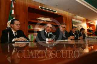 MÉXICO, D.F., 07NOVIEMBRE2008.- Luis Tellez Secretario de Comunicaciones y trasportes encabezo esta tarde una conferencnia de prensa donde se informó que la investigación de campo de el avión que cayó donde murió el secretario de Gobernación, Juan Camilo Mouriño, el pasado martes. prácticamente concluyó, y que mañana habrá un recorrido en la zona del accidente para los medios. FOTO: SÁSHENKA GUTIERREZ/CUARTOSCURO.COM