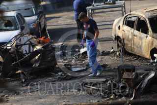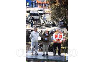 MÉXICO, D.F., 08NOVIEMBRE2008.- El secretario de Comunicaciones y Transportes Luis Tellez en compañía de Director de Aeropuertos Gilberto Lopez Meyer realizaron un recorrido de reconocimiento e identificación de la zona de desastre ubicada en paseo de la Reforma y calle Ferrocarril de Cuernavaca, en la colonia Lomas de Chapultepec; donde el pasado martes se estrello un avion privado donde viajaban distintas autoridades Publicas entre ellas Juan Camilo Mouriño Secretario de Gobernación. En el Lugar Luis Tellez explico los procedimientos y avances que se tienen en el reconocimiento y recopilación de la información al examinar los daños sobre los vehículos y la zona en general, así mismo se puede apreciar la presencia de investigadores extranjeros indagando en la zona. Tellez asegura que el paso libre por la zona estará abierto para el Lunes 10 de Noviembre. FOTO: COSME RADA/CUARTOSCURO.COM