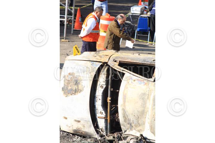 MÉXICO, D.F., 08NOVIEMBRE2008.- El secretario de Comunicaciones y Transportes Luis Tellez en compañía de Director de Aeropuertos Gilberto Lopez Meyer realizaron un recorrido de reconocimiento e identificación de la zona de desastre ubicada en paseo de la Reforma y calle Ferrocarril de Cuernavaca, en la colonia Lomas de Chapultepec; donde el pasado martes se estrello un avion privado donde viajaban distintas autoridades Publicas entre ellas Juan Camilo Mouriño Secretario de Gobernación. En el Lugar Luis Tellez explico los procedimientos y avances que se tienen en el reconocimiento y recopilación de la información al examinar los daños sobre los vehículos y la zona en general, así mismo se puede apreciar la presencia de investigadores extranjeros indagando en la zona. Tellez asegura que el paso libre por la zona estará abierto para el Lunes 10 de Noviembre. FOTO: COSME RADA/CUARTOSCURO.COM