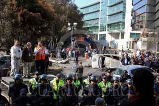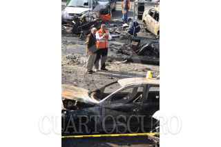 MÉXICO, D.F., 08NOVIEMBRE2008.- El secretario de Comunicaciones y Transportes Luis Tellez en compañía de Director de Aeropuertos Gilberto Lopez Meyer realizaron un recorrido de reconocimiento e identificación de la zona de desastre ubicada en paseo de la Reforma y calle Ferrocarril de Cuernavaca, en la colonia Lomas de Chapultepec; donde el pasado martes se estrello un avion privado donde viajaban distintas autoridades Publicas entre ellas Juan Camilo Mouriño Secretario de Gobernación. En el Lugar Luis Tellez explico los procedimientos y avances que se tienen en el reconocimiento y recopilación de la información al examinar los daños sobre los vehículos y la zona en general, así mismo se puede apreciar la presencia de investigadores extranjeros indagando en la zona. Tellez asegura que el paso libre por la zona estará abierto para el Lunes 10 de Noviembre. FOTO: COSME RADA/CUARTOSCURO.COM