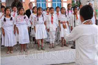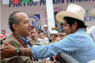 HUEYTLALPAN, PUEBLA, 12NOVIEMBRE2008.- Felipe Calderón Hinojosa, Presidente de México y Luis H. Álvarez, director Comisión Nacional para el Desarrollo de los Pueblos Indígenas, durante la inauguración del camino Olintla Cuatro Caminos que se llevo a cabo en dicha entidad. FOTO: ALFREDO GUERRERO/CUARTOSCURO.COM