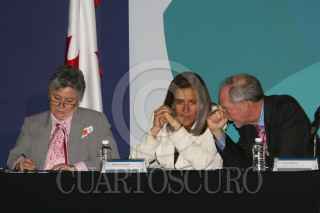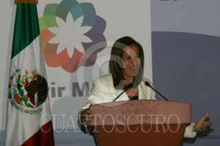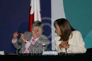 MÉXICO D.F., 18NOVIEMBRE2008.- Margarita Zavala, esposa del presidente, Felipe Calderón, y presidenta del D.I.F. acudió esta tarde al Museo de Economía donde se realizó la Conferencia Internacional sobre Descentralización Poder y Derechos de las Mujeres. FOTO: GUILLERMO PEREA/CUARTOSCURO.COM